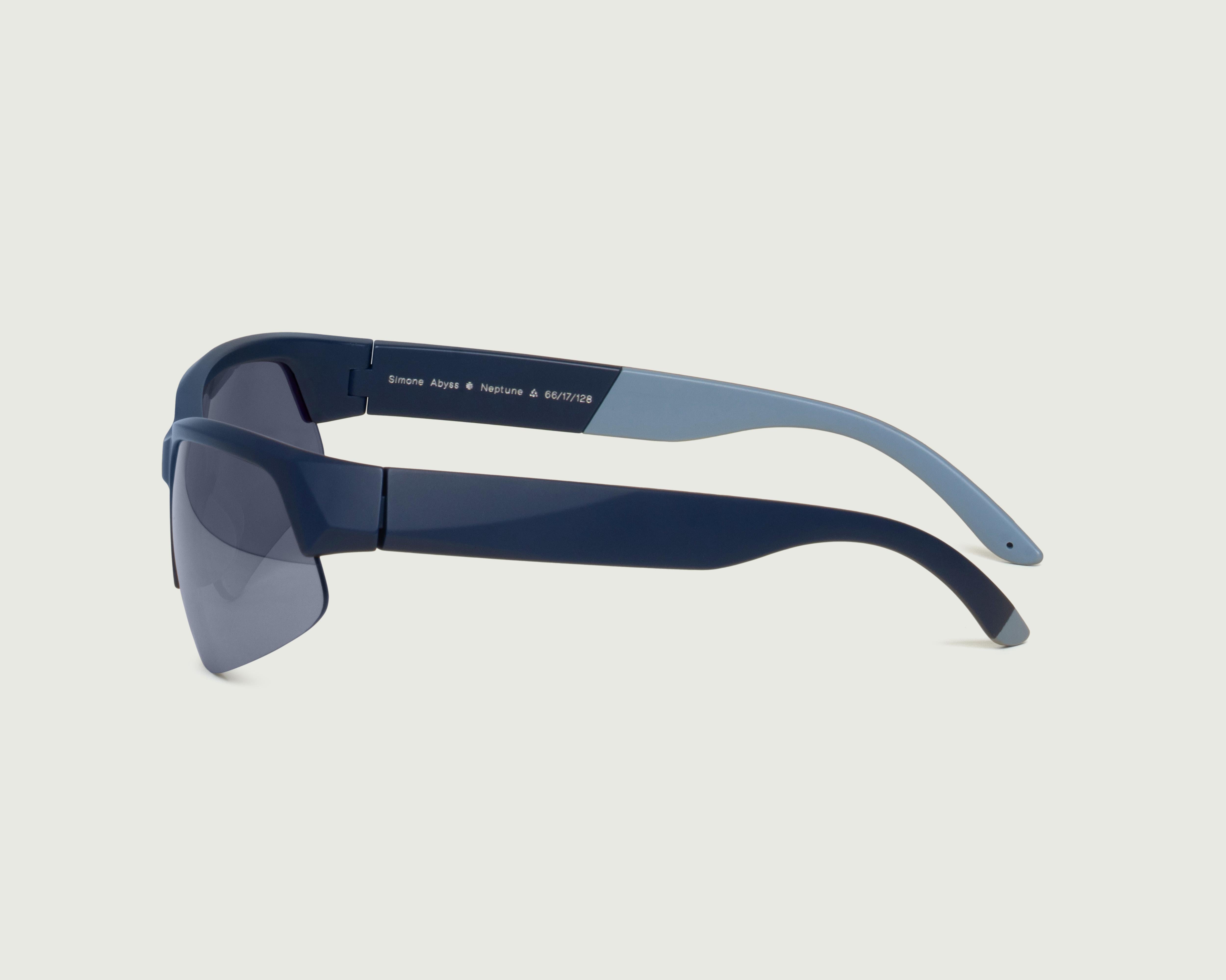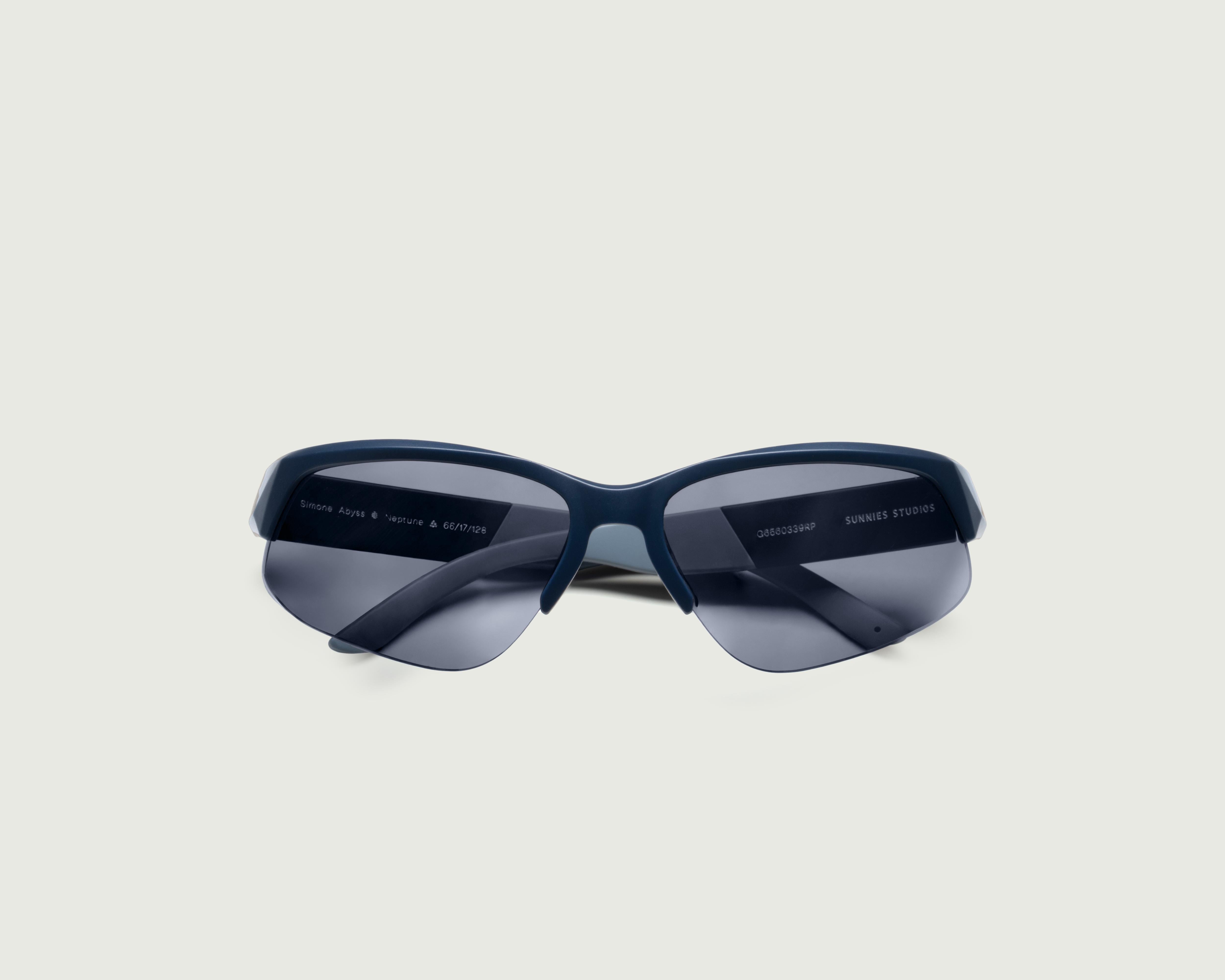 A wraparound half-rim frame.