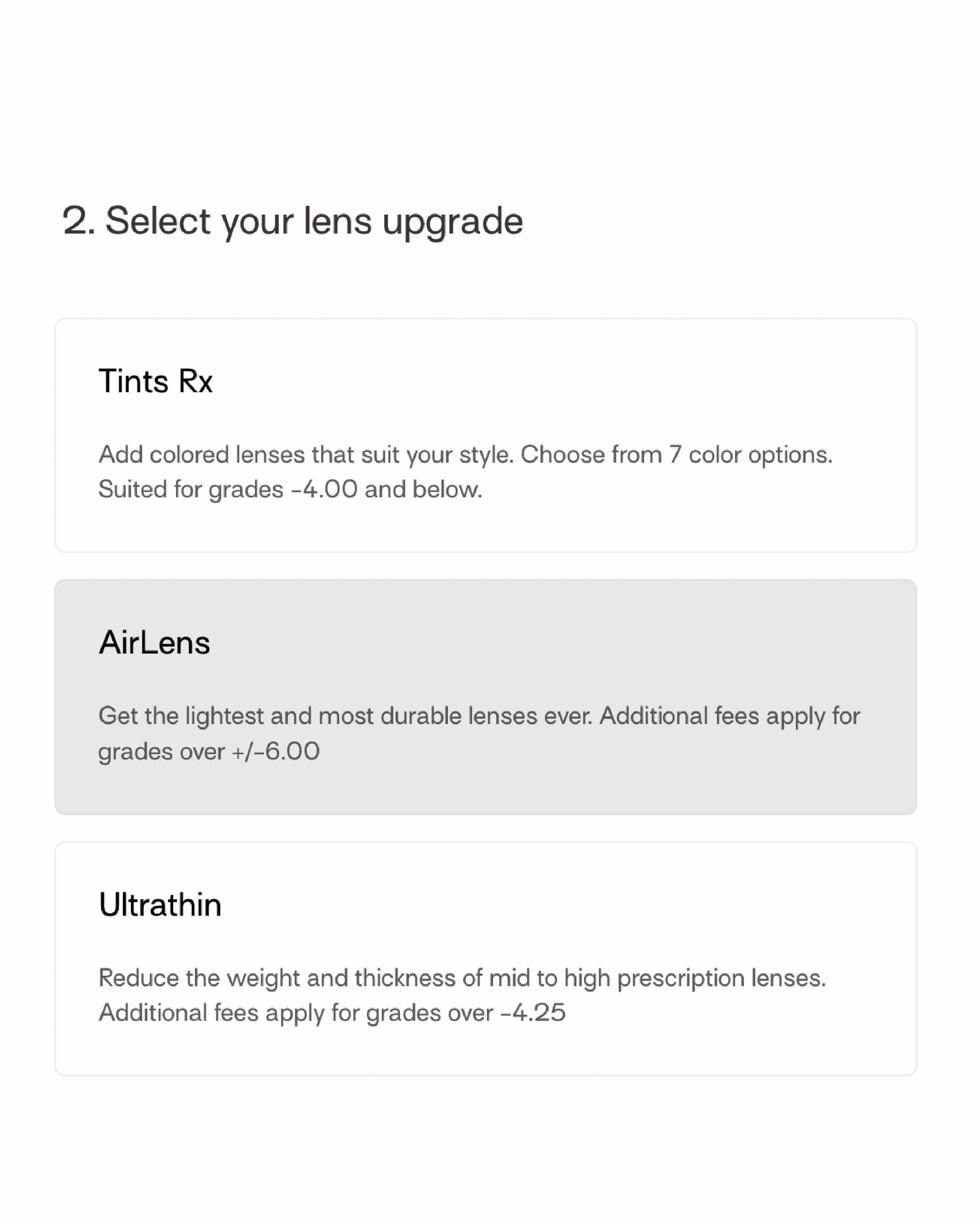 Select lens upgradeChoose “Airlens ” from our selection of lens upgrades.