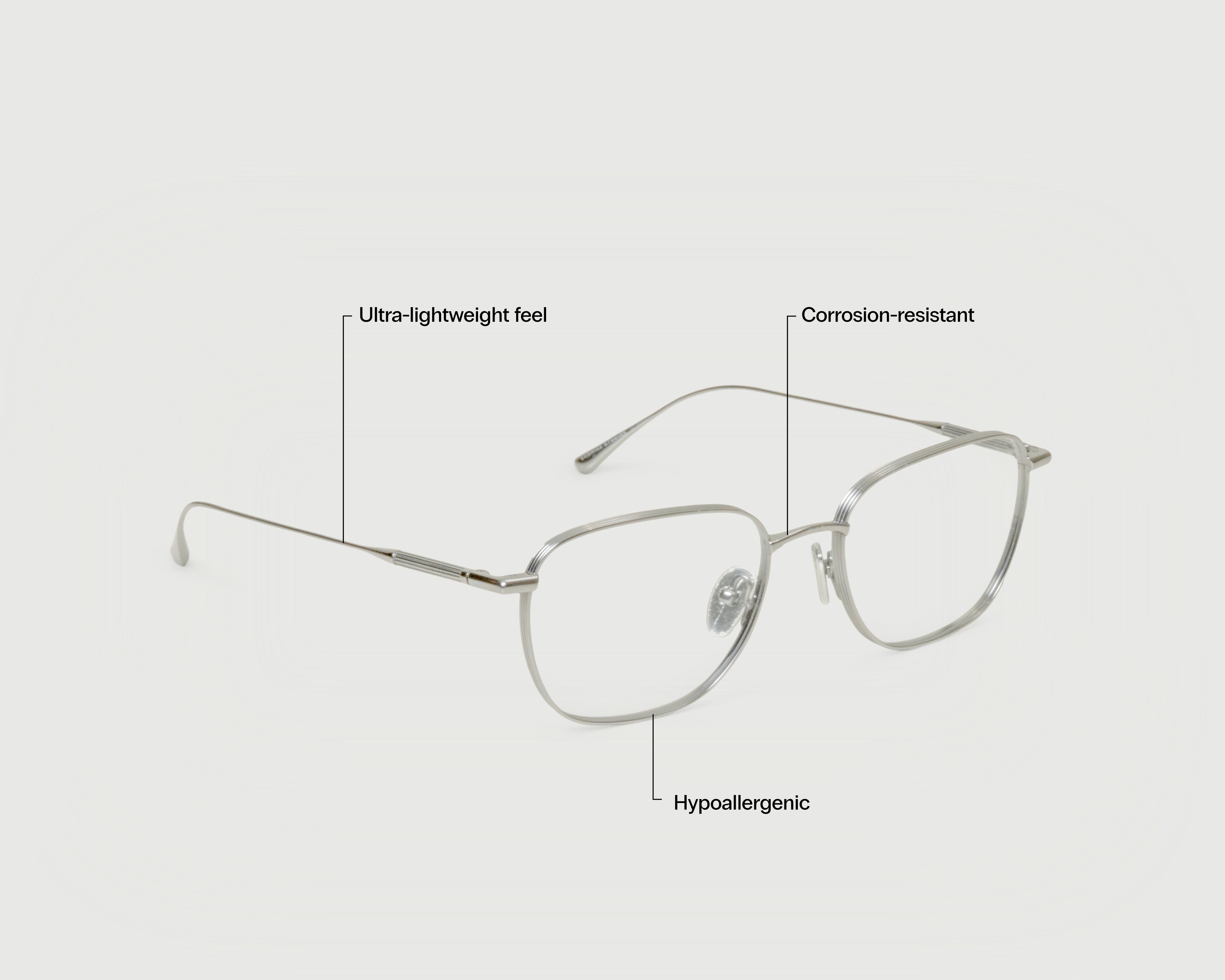 A rounded square titanium frame that combines strength and lightweight design for all-day comfort. Known for its hypoallergenic, warp-resistant, and durable qualities, this frame is perfect for daily wear.