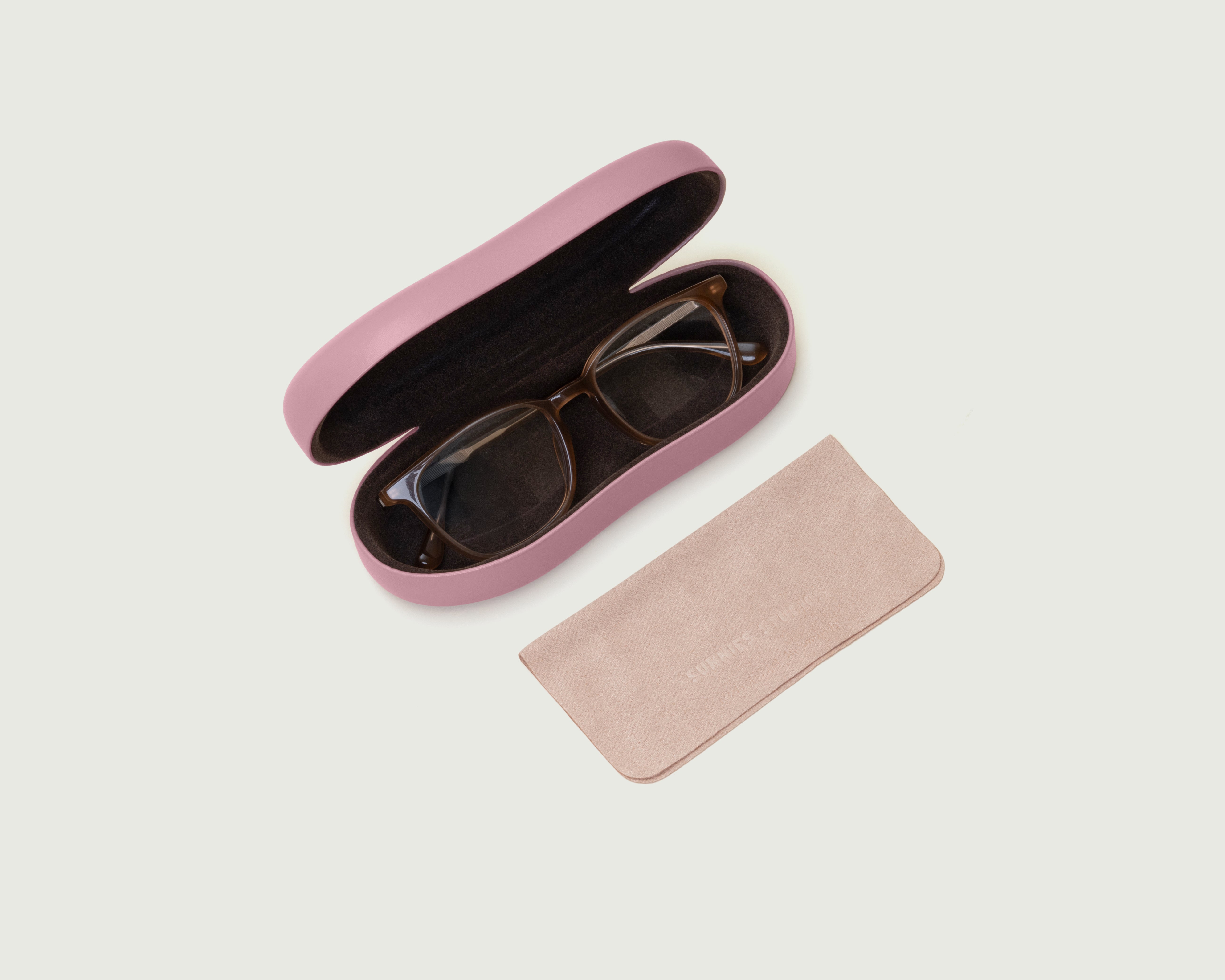 Keep your frames safe and secure in a pebble-inspired case that prevents damage. Fits one pair of eyewear and comes with a cleaning cloth.