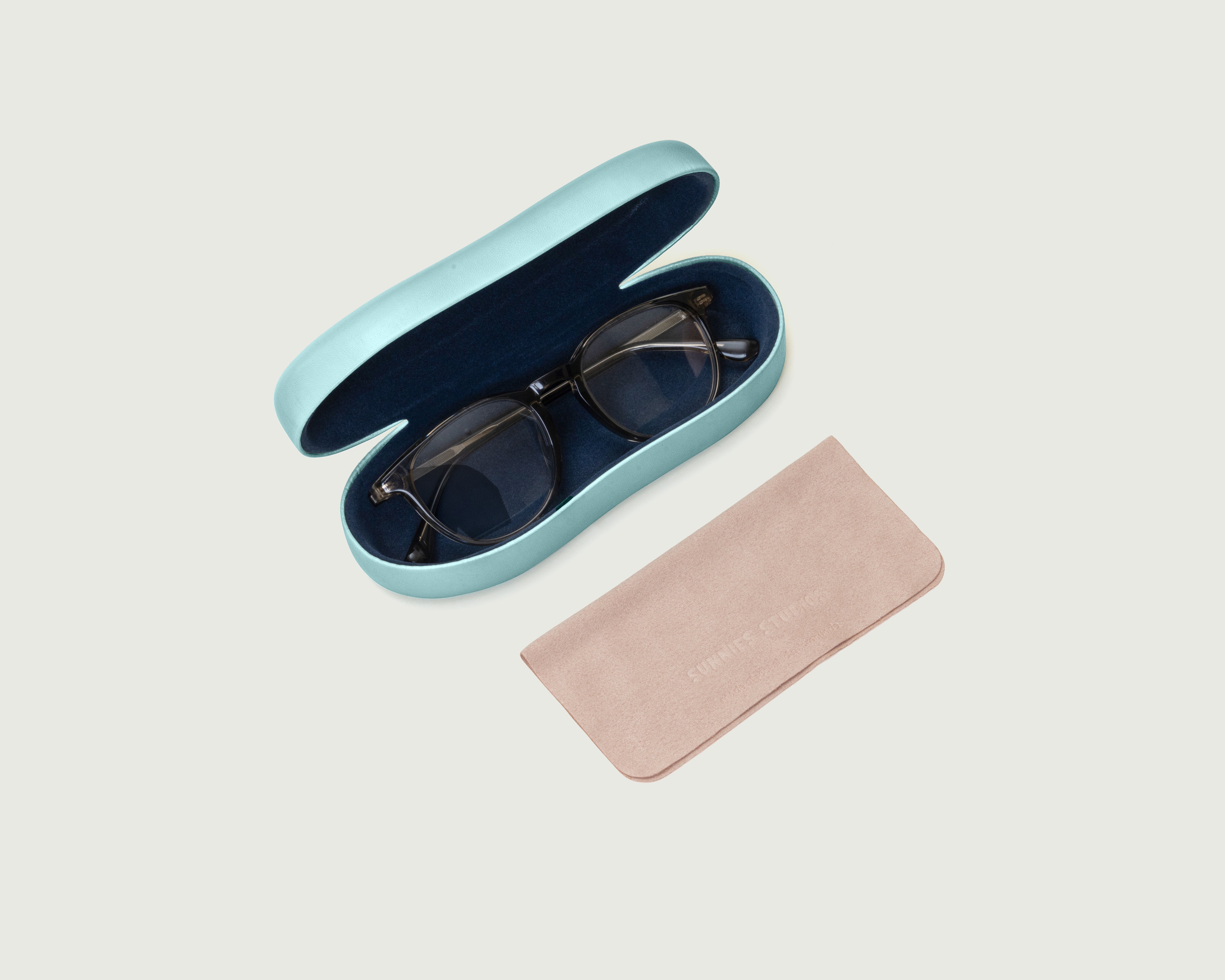 Keep your frames safe and secure in a pebble-inspired case that prevents damage. Fits one pair of eyewear and comes with a cleaning cloth.