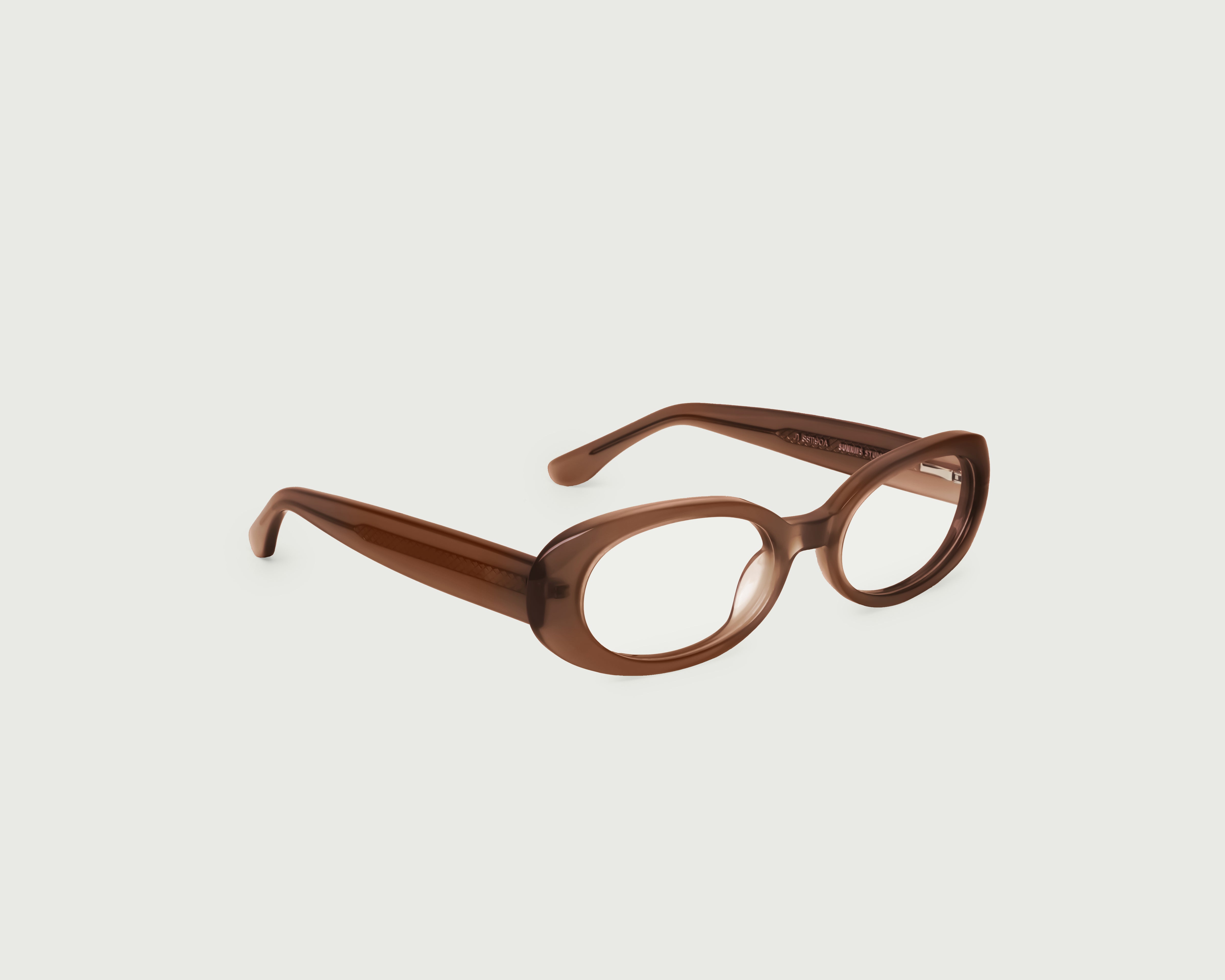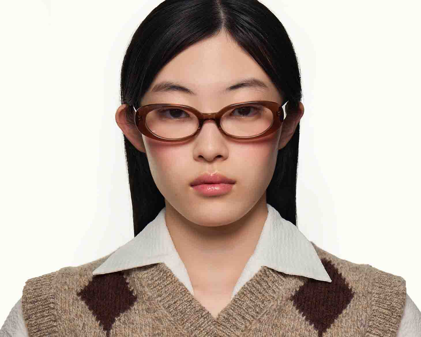 A slim oval frame. Also Available in sunglasses.