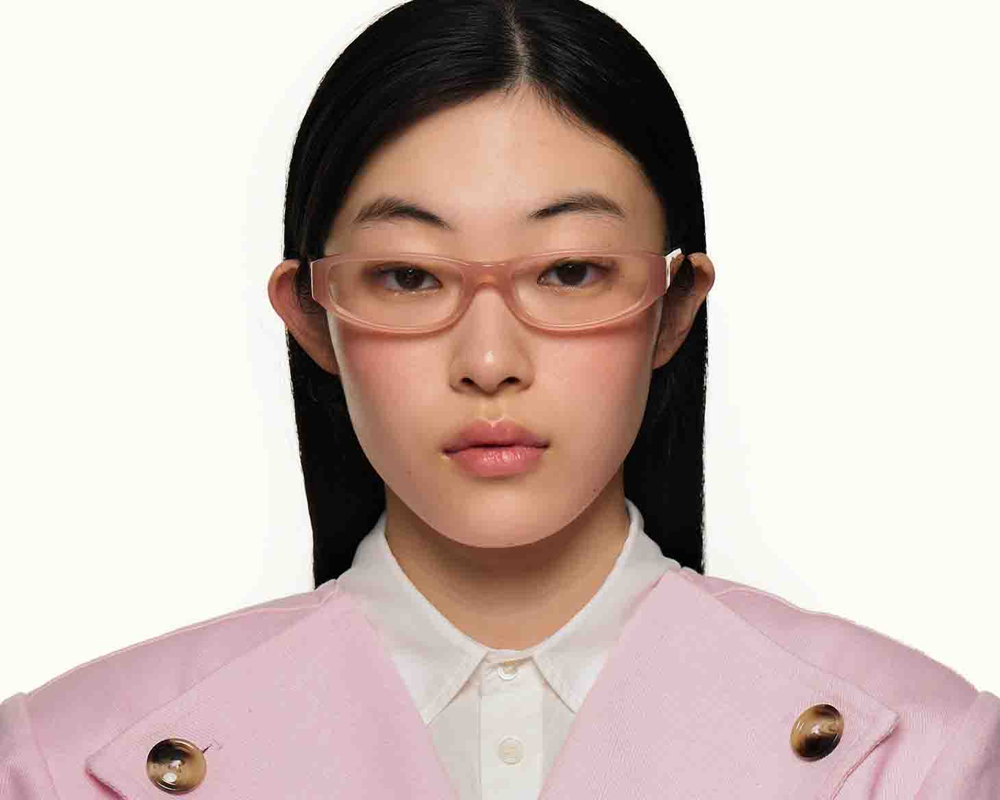 A slim, rectangular cateye frame.