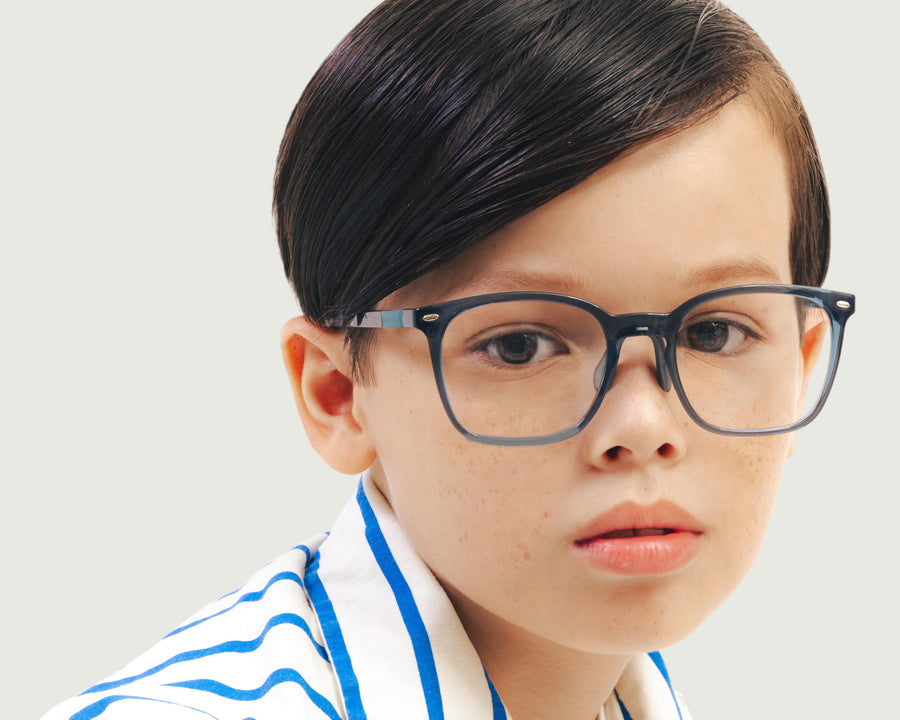 A classic square frame for kids between 7 to 12 years old. Designed with rubber nose pads, hinges, and temple tips for a flexible fit.