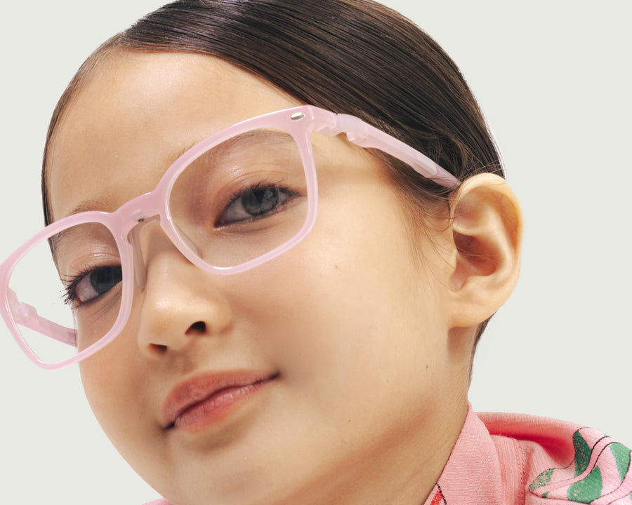 A classic square frame for kids between 7 to 12 years old. Designed with rubber nose pads, hinges, and temple tips for a flexible fit.