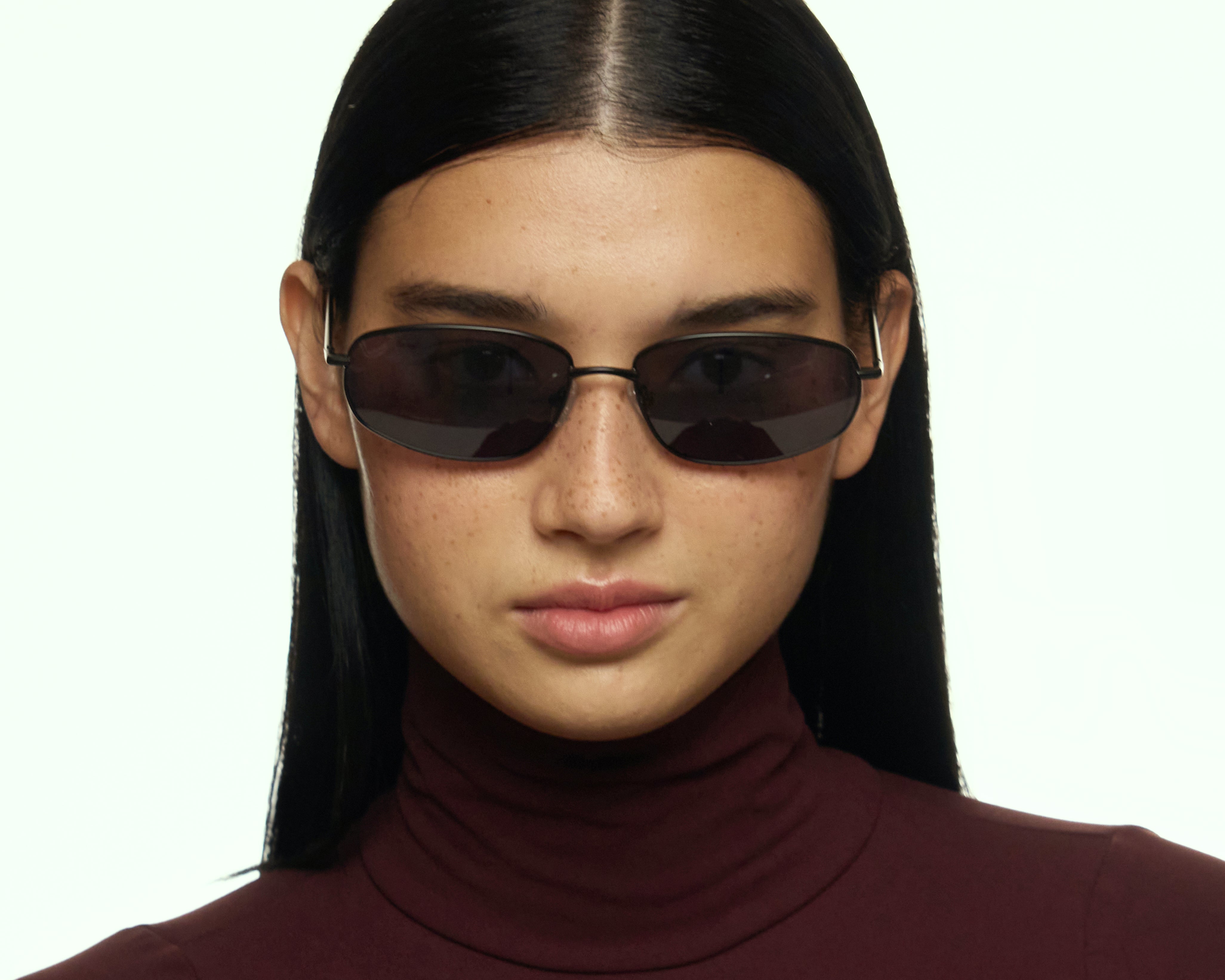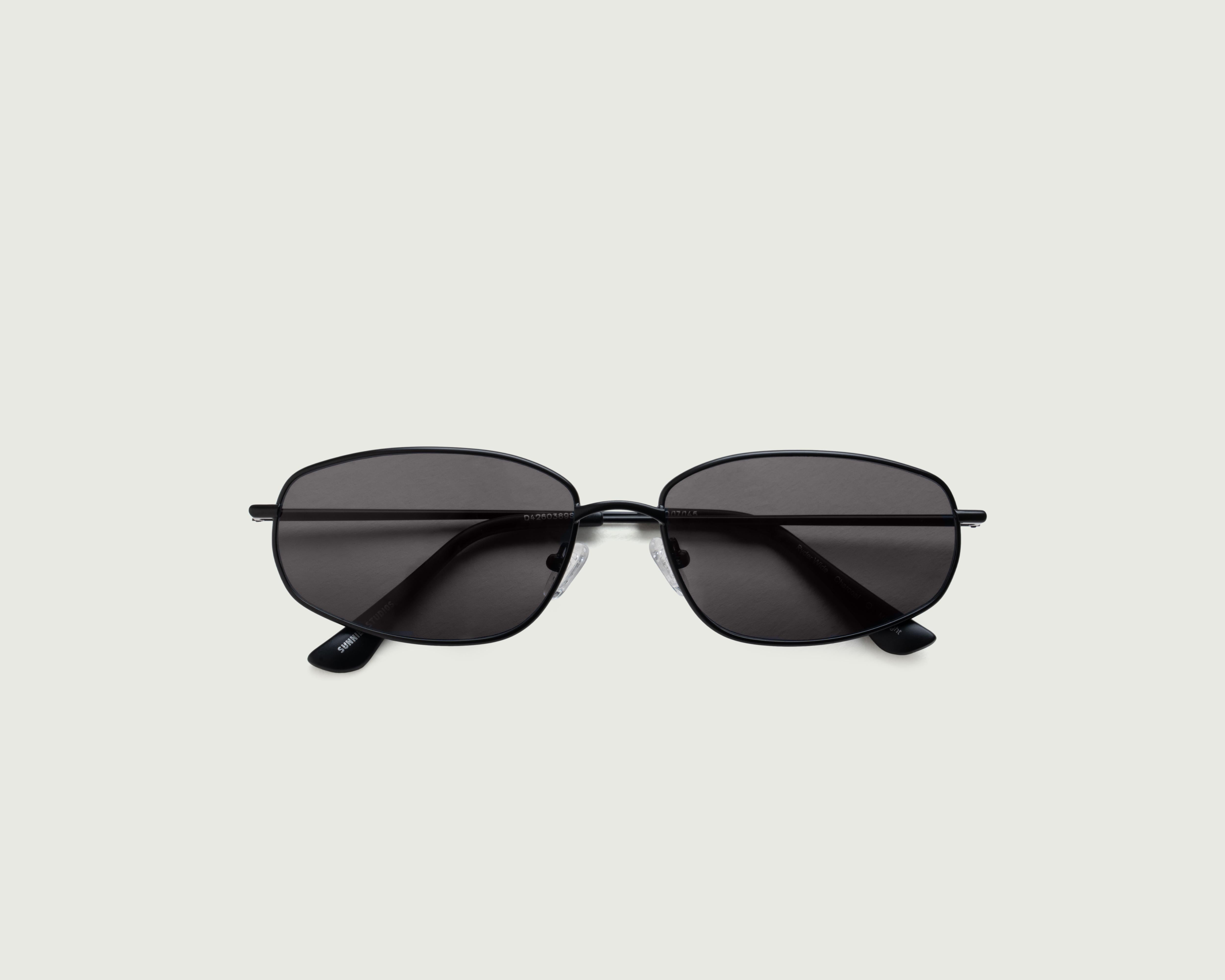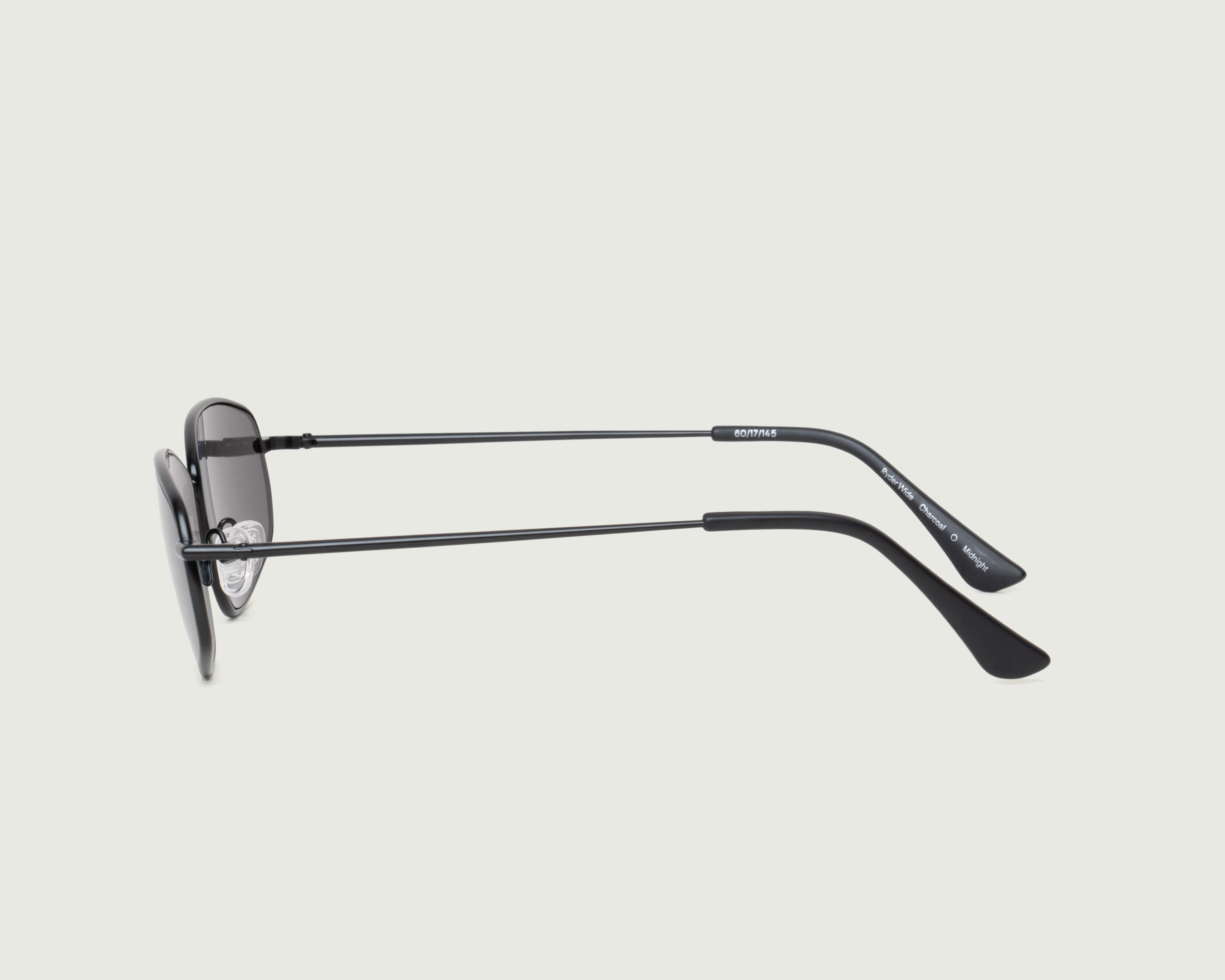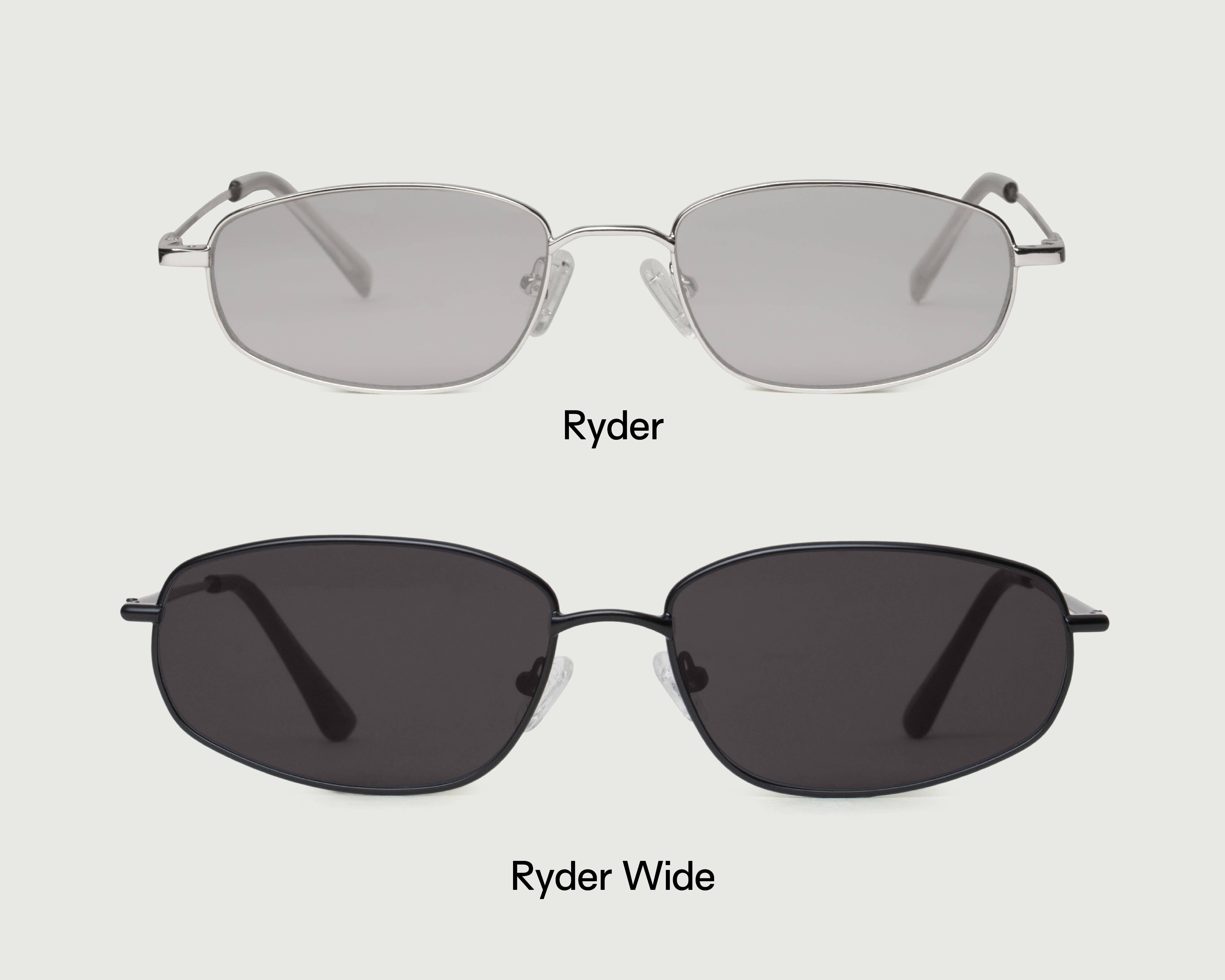 An upswept rectangular metal frame for a wide fit. Also available in a regular size.